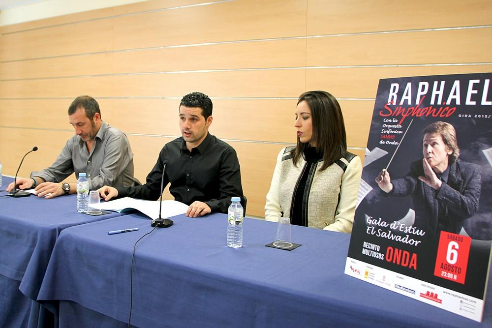Raphael actuará el 6 de agosto, a partir de las 23 horas, en un concierto en el que estará acompañado por la Societat Artístico-Musical Vila d'Onda (SAMVO). Así ha anunciado el concejal de fiestas del Ayuntamiento de Onda y presidente del Consell de Festes, Asensio Blaya, la actuación del ilustre artista español, que tendrá lugar en el Recinto Multiusos, con motivo de la celebración de las fiestas patronales en honor al Santísimo Salvador.