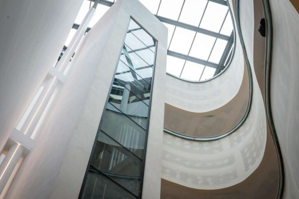 En l'espai que actualment ocupen les escales s'ha instal·lat un ascensor panoràmic, una actuació clau per a millorar l'accessibilitat. A més, s'han disposat diverses sales per a usos múltiples.