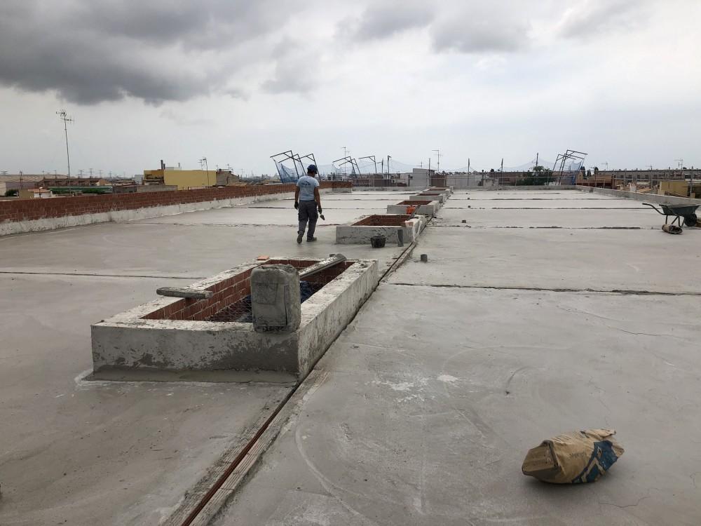 Malgrat la pluja dels últims dies, els treballs avancen a bon ritme amb l'alçat de l'estructura i les teulades en el recinte de l'antiga Garrofera. A més, els operaris ja han escomés el 80% de les obres d'impermeabilització per a evitar filtracions una vegada acabat l'edifici, així com l'aïllament tèrmic i acústic, situació que permet avançar el cronograma previst per l'empresa i la direcció d'obra i mantindre el calendari per a l'inici de les classes el pròxim curs.