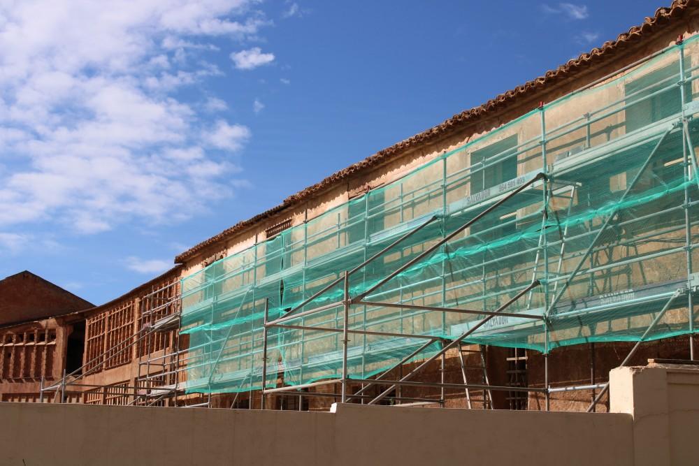 Per a certificar-ho, es realitzarà una intervenció per a la qual, en primer lloc, s'ha muntat una estructura de bastida de tres altures i correguda al llarg de tot el parament, que descansa sobre el solar adjacent.