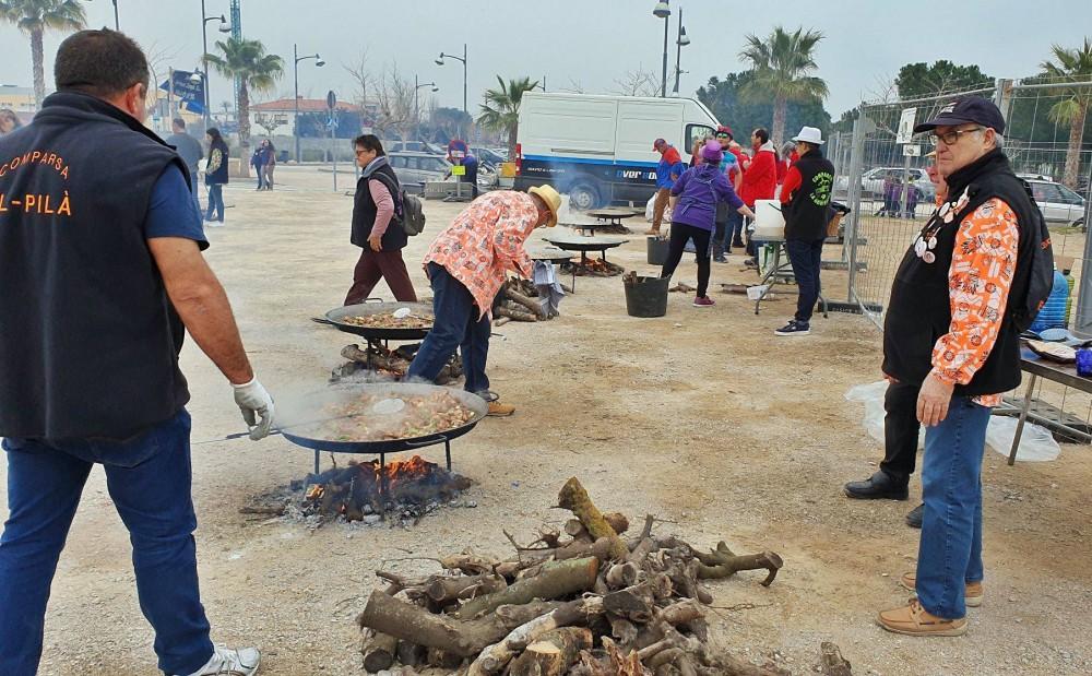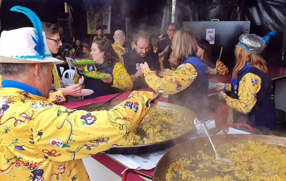 Además, esta jornada se dedica tradicionalmente a la elaboración de paellas por parte de cada una de las comparsas, de ahí que el recinto del carnaval se haya llenado del colorido de las camisolas que distingue a cada una de las 31 comparsas.