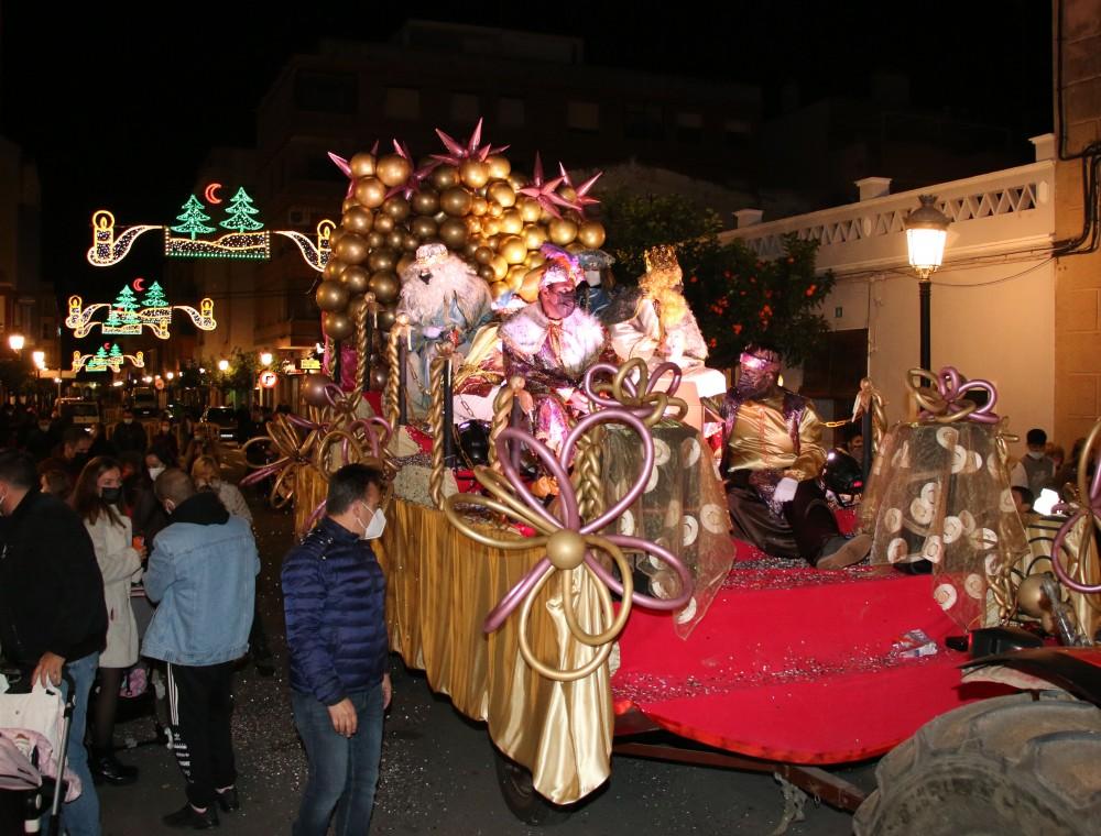 Més tard ha començat la cavalcada, que ha comptat amb la presència de ballarines, dracs lluminosos, xanquers, fades màgiques o faquirs, entre altres personatges, que han precedit a Ses Majestats d'Orient, que han recorregut l'Avinguda País Valencià en carruatge. La comitiva l'ha tancada la banda de música de l'Associació Musical Santa Cecilia d'Almenara. La cavalcada ha comptat amb la col·laboració de l'Associació Cultural Recull.