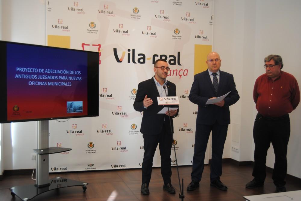 Obiol ha recordat que l’edifici data de 1969, que va nàixer amb un ús de mercat i que en 1991 es va cedir al Ministeri d’Interior per a acollir els serveis judicials, per tant es van tornar a remodelar. Amb la construcció de la nova Ciutat de la Justícia en 2013, els jutjats van quedar inutilitzats i una part dels quals corresponien a la sala de vistes, van ser enderrocats, i es va idear l’actual plaça de Colón enfront de l’Església Arxiprestal de Vila-real, Bé d’Interés Turístic Cultural. “Es tracta d’un espai municipal sense ús que passarà a albergar dos importants serveis municipals, com són Economia, que ara s’ubica a l’edifici de la Cambra Agrària, i Tresoreria, ubicada a la zona del Barranquet, en un espai cedit per CCOO a l’Ajuntament, que s'espera puguen tornar a ocupar perquè hui dia no tenen seu física”, explica.