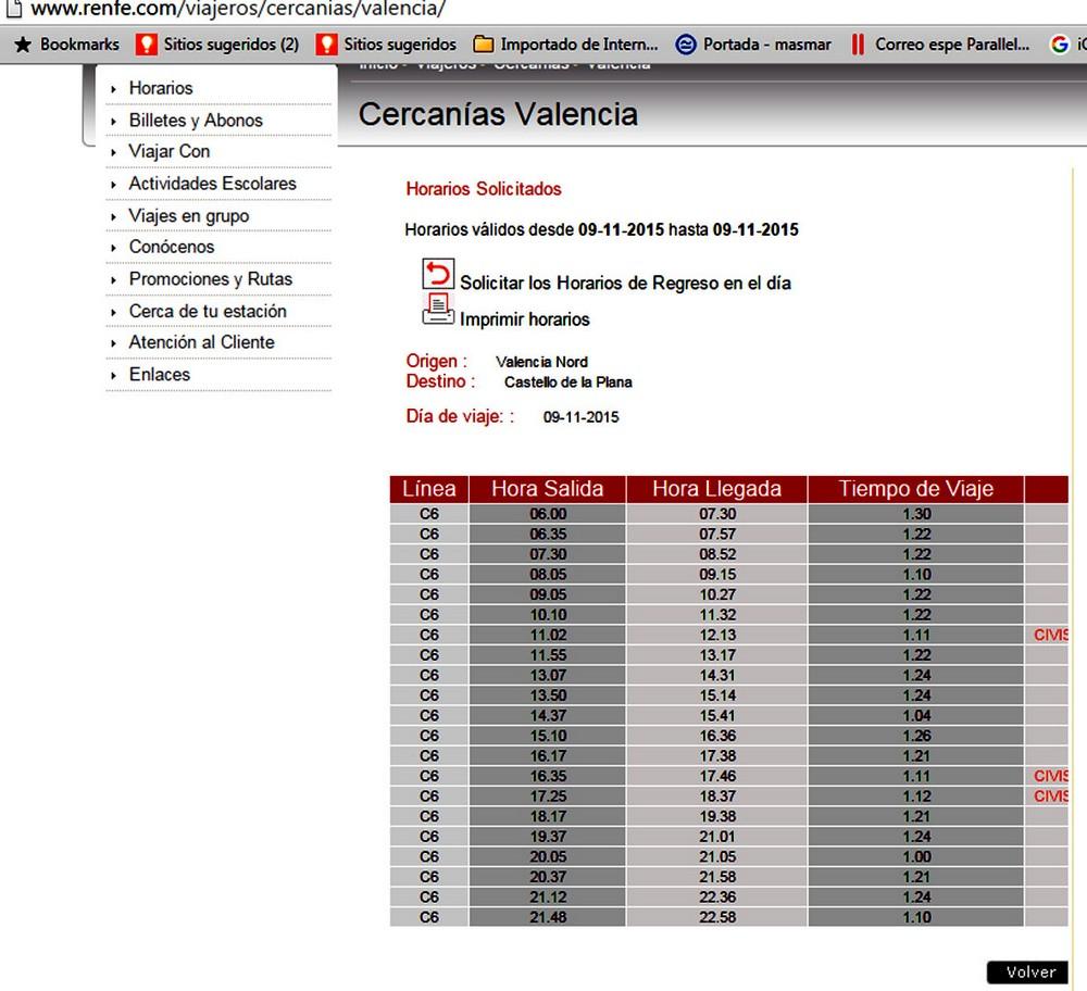 A modo de curiosidad, Castellón Información ha consultado los horarios de Cercanías entre Valencia y Castellón a través de Internet, donde este Cercanías ya no aparece en los horarios de conexión. Según esta información facilitada por el portal Web de Renfe, el último Cercanías de la jornada sería el inmediatamente anterior: el de las 21:48, entre Valencia y Castellón; y sí que aparece el último servicio entre Castellón y Valencia, a las 22:25, sobre el que no se realizan observaciones especiales.