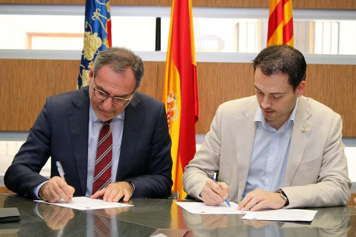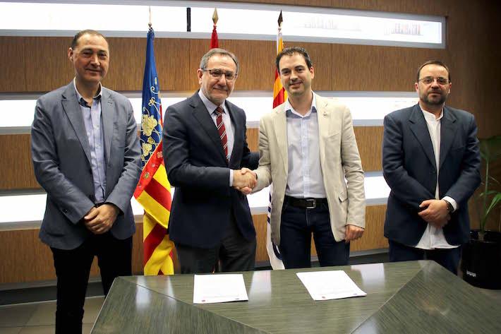L’alcalde d’Onda, Ximo Huguet, i el rector de la Universitat Jaume I, Vicent Climent han firmat aquest matí un conveni de col·laboració pel manteniment de l’Aula Universitària UJI-Vila d’Onda, creada en juny de 2017 i dirigida pel professor del Departament d’Història, Geografia i Art, Joan Feliu.