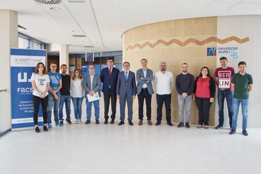El rector en funcions de la Universitat Jaume I, Vicent Climent, i el president de FACSA, Enrique Gimeno, han firmat dilluns 28 de maig de 2018 la renovació per tres anys del conveni per continuar amb les activitats de la Càtedra FACSA d'Innovació en el Cicle Integral de l'Aigua. L'acte ha comptat amb la participació de José Guillermo Berlanga, director d'R+D+i de FACSA, Miguel Ángel Moliner, vicerector en funcions d'Economia i PAS i Sergio Chiva, director de la Càtedra i professor del Departament d'Enginyeria Mecànica i Construcció.
