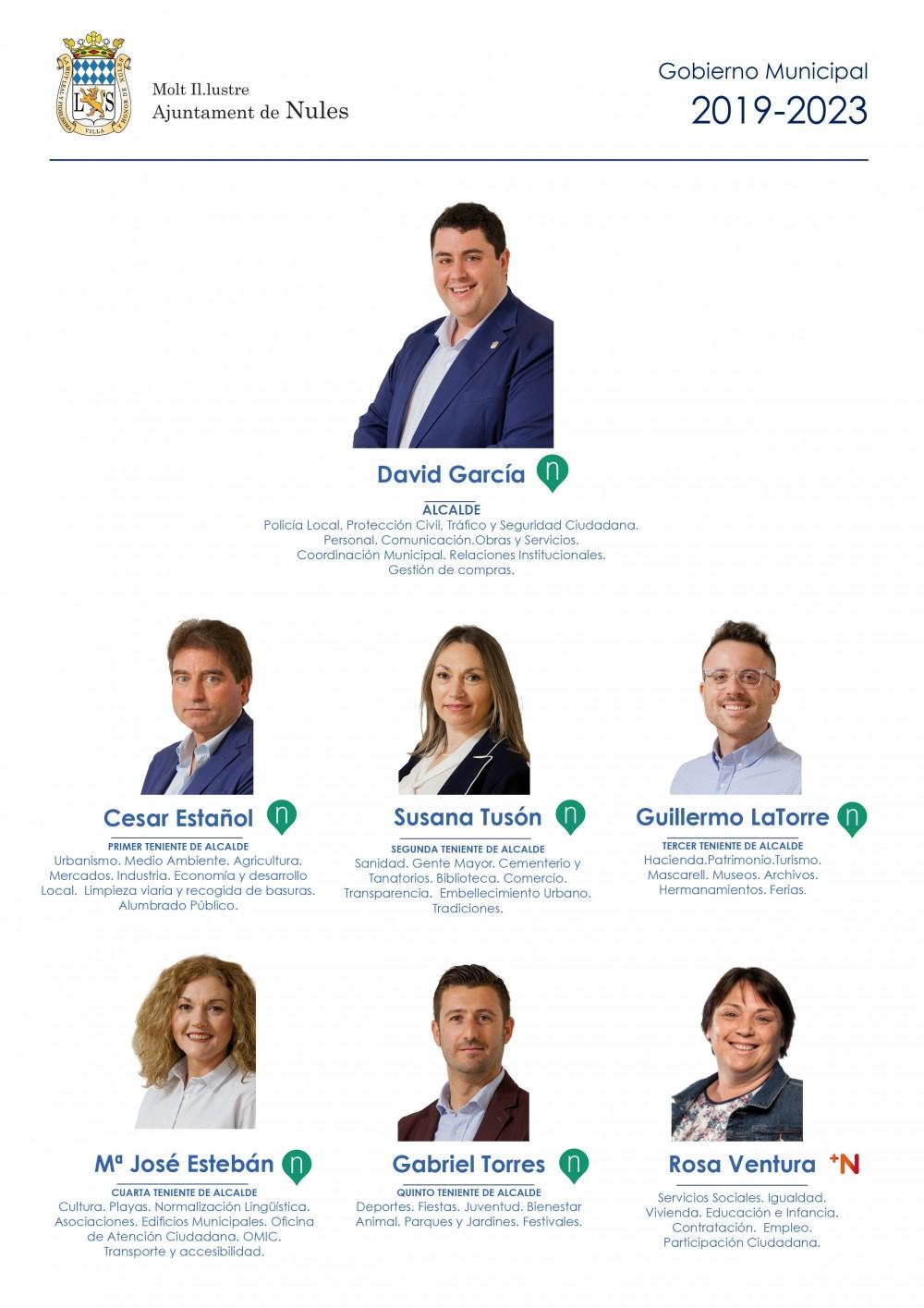 El Gobierno Municipal ha sido presentado después de la firma del acuerdo de gobernabilidad alcanzado anoche entre los grupos municipales de Centrats en Nules (CeN) y Més Nules (+N), por el cual la concejal de este último grupo, Rosa Ventura, asumirá concejalías y áreas de gestión dentro del Ayuntamiento.