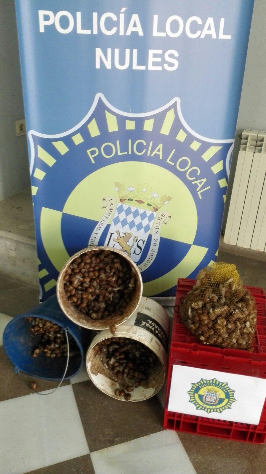 La Policía Local de Nules ha actuado contra cuatro personas, residentes en Borriana, a las que se les ha incautado 18 kilos de caracoles cogidos en el término municipal de la comarca de la Plana Baixa previsiblemente para su posterior venta.