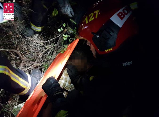 Agentes del Parque de la Plana Alta, del Consorcio Provincial de Bomberos, rescataban esta mañana al conductor de un tractor, que se vió atrapado durante horas tras haber volcado con su vehículo