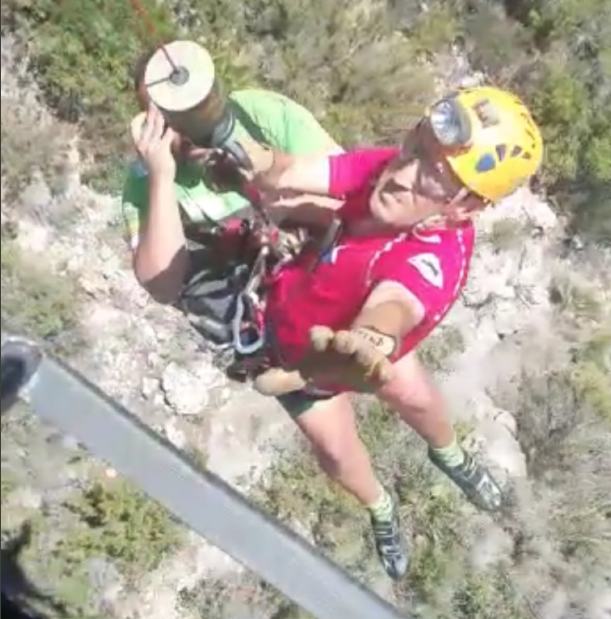 Finalemente se ha desplazado también un Helicóptero de rescate con una Unidad de Rescate de Montaña (URM) quienes han ubicado al ciclista en una zona de difícil acceso.