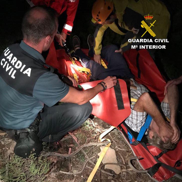 Una vez tranquilizado, se logra contactar con la sala 112, servicios médicos y bomberos así como asistencia médica telefónicamente. Los servicios sanitarios participan que al lugar no puede llegar una ambulancia y por lo tanto tampoco el oxigeno que necesita la persona de mayor edad; ante tal circunstancia los guardias civiles deciden cargar al hombre y tras recorrer un kilómetro y medio lograron vislumbrar las luces de los vehículos de los bomberos. Una vez asegurado en camilla es transportado hasta la ambulancia y su posterior traslado a un centro hospitalario.