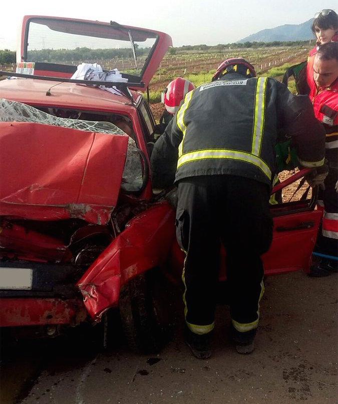 Los bomberos han tenido que actuar y rescatar a una persona que había quedado atrapada en su vehículo tras un accidente en Les Alqueries. El suceso ha tenido lugar en el camino El Palmeral.