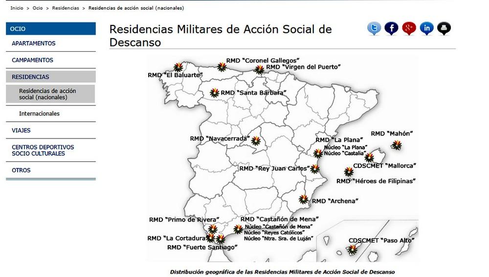 Este centro y el de Castalia figuran como Residencias de Descanso veraniego de precio reducido para militares de Defensa