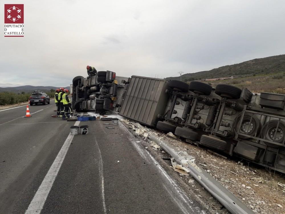 Una fuga de combustible que se ha producido tras el accidente sufrido por un camión.