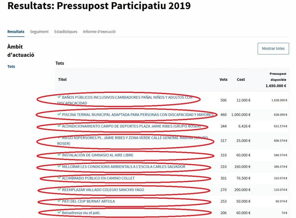 En 2017 se propusieron un total de 13 propuestas en los Presupuestos Participativos de las cuales todavía faltan algunas por ejecutar. “Ni se ha eliminado el cemento de todos los patios de colegios, ni ha concluido la señalización de los caminos escolares seguros en todos los centros”, repasa Carrasco. Y con respecto al 2018, se aprobaron un total de 8 proyectos, y la mitad de ellos, están todavía por hacer. Entre ellos el Parque Ciclista, que “se acaba de adjudicar hace muy pocas semanas, por lo que, en el 2020, todavía sigue sin ser una realidad; la rotonda de la Escuela de Idiomas o el parque de reciclaje creativo RecreCAS. Y tampoco el equipamiento del gimnasio de las instalaciones deportivas del Gaetà Huguet”.