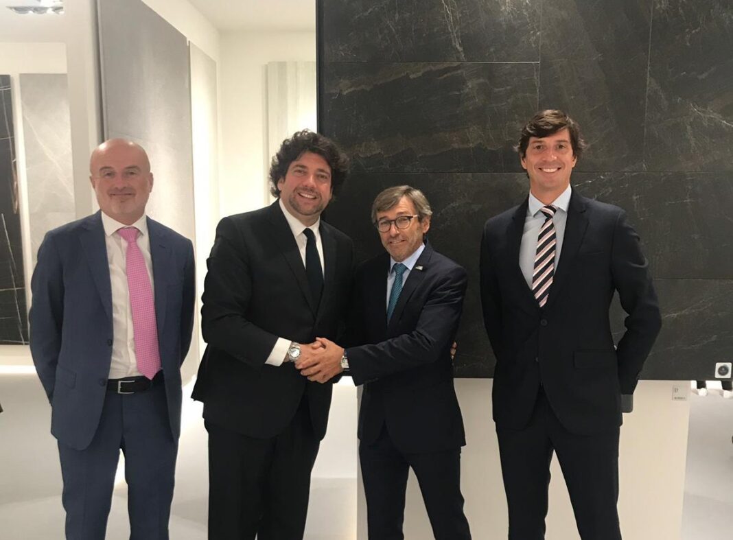 El Presidente de ANFFECC, Joaquín Font de Mora y Manuel Breva, recientemente nombrado Secretario General de la Asociación de fabricantes de Fritas, Esmaltes y Colores Cerámicos, se han reunido en Cersaie con el presidente de la asociación homóloga italiana -Ceramicolor-, Claudio Casolari y su Secretario General, Giuseppe Abello. Como ya viene siendo habitual, en sus encuentros tratan de los temas más relevantes que preocupan a ambas industrias, con el fin de llegar a puntos de colaboración.