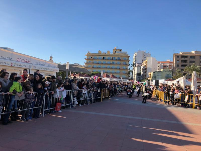 De esta forma, la Comitiva recorrió la Plaza del Mar, atravesó la dársena frontal, y llegó al Paseo Buenavista. Prácticamente no cabía un alfiler y a duras penas se podía mantener a los peques sujetos de la mano. Todos llevaban esperando demasiado tiempo para ver a sus Reyes Magos.