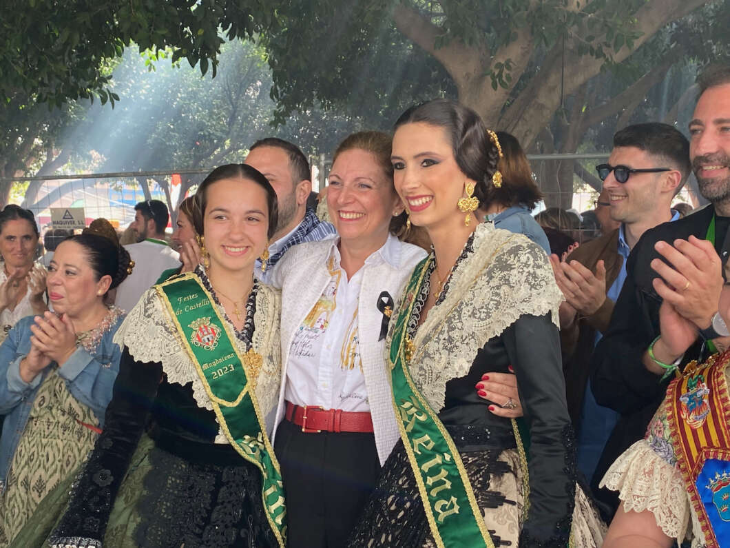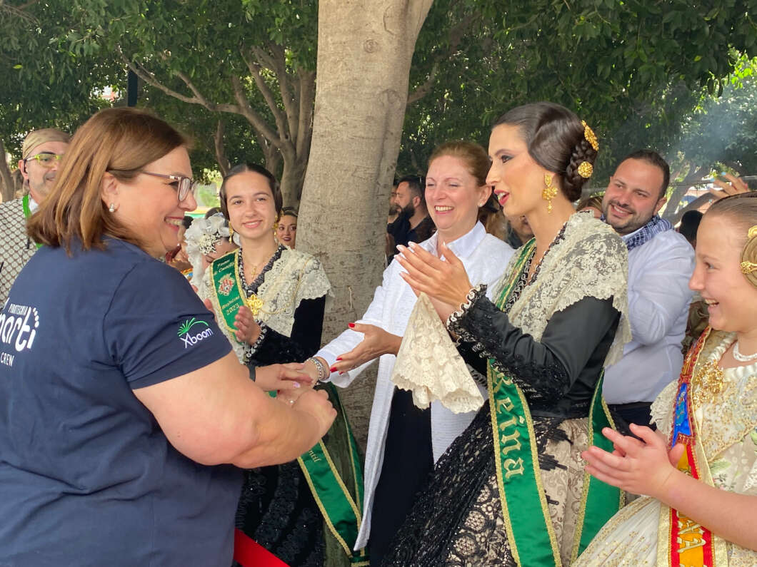 El público estalló en aplausos. La pirotécnica salió a saludar, recibida con ovaciones. Allí tuvo ocasión de saludar a las reinas de Castelló y su corte, pero no le faltó tiempo tampoco para dirigirse a las Belleas del Foc a las que prometió u fuerte espectáculo para las Fiestas de Sant Joan, y saludar y fotografiarse con la comisión de Borriana.