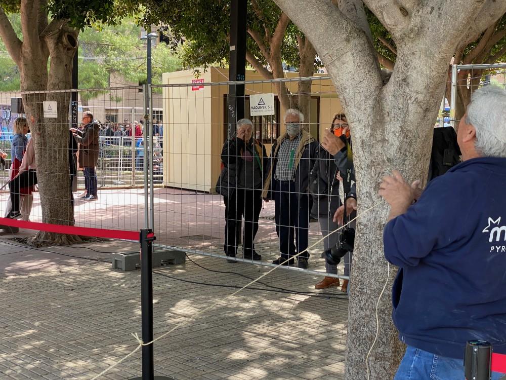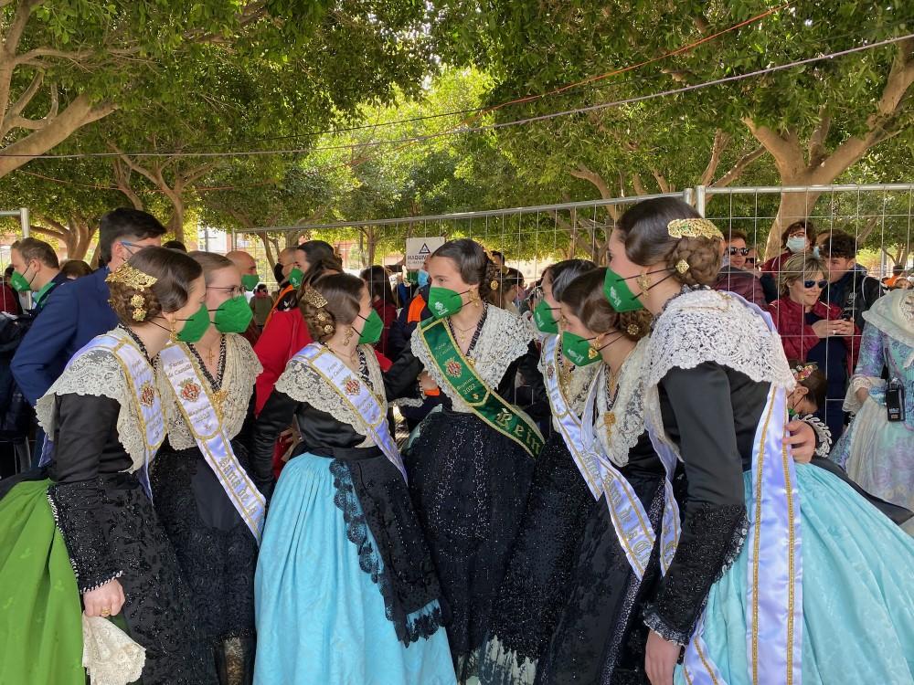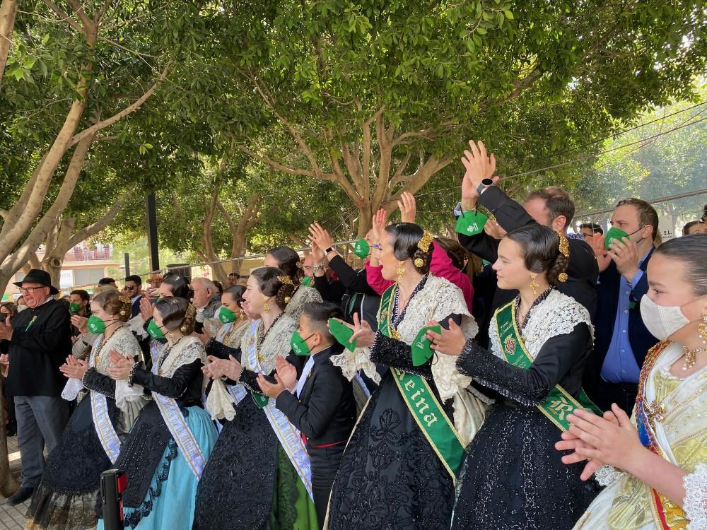 El público llenaba todos los rincones del recinto de mascletà sediento de pólvora, y aplaudió a las reinas cuando llegaron.