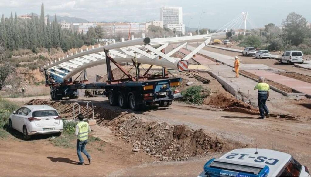 La obra ha sido ejecutada en un plazo de 12 meses más 3 meses de prórroga debido a retrasos en la fabricación de la pasarela, provocados por la atención prioritaria de la empresa a otras obras de emergencia por la DANA y también debido a problemas en el suministro de materiales.