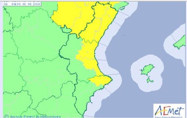 El Área de Seguridad Ciudadana de Castellón se hacia eco esta mañana de la alerta de la Agencia Estatal de Meteorología, AEMET, que ha puesto en marcha el nivel amarillo de emergencias por riesgo de fuertes lluvias en toda la provincia de Castellón.