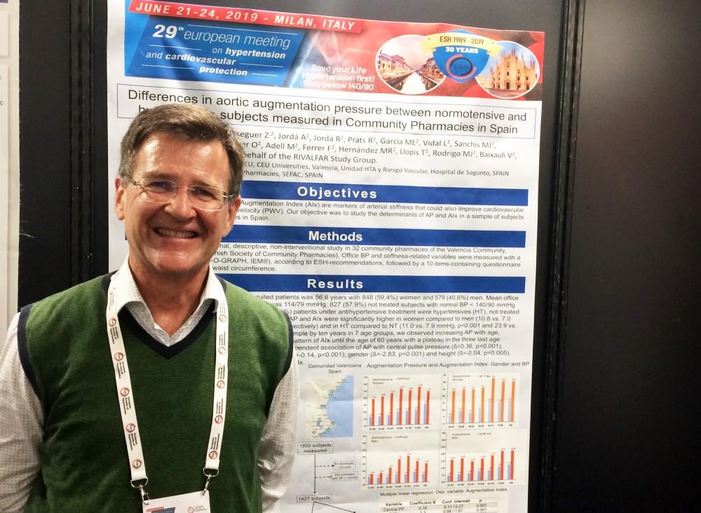 Otros dos estudios de la Universidad CEU Cardenal Herrera se han presentado en el 29th European Meeting on Hypertension and Cardiovascular Protection, celebrado en Milán. Uno de ellos es resultado de la colaboración de esta universidad y SEFAC en el proyecto RIVALFAR para estimar la “edad vascular” de la población valenciana, y ha constituido la tesis doctoral del farmacéutico de SEFAC en Bocairent Vicente Colomer, bajo la dirección de los profesores de la CEU UCH Lucrecia Moreno y Enrique Rodilla. En él se analizan las diferencias en el aumento de la presión aórtica central entre personas normotensas e hipertensas.