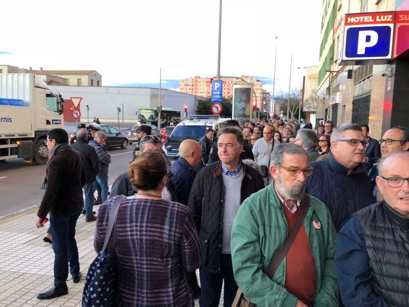 La presencia de Rivera generó tal expectación, que ya desde media hora antes se acumulaban las colas para acceder al hotel y hubo que habilitar el recinto de la entrada para dar cabida al público que había acudido a la cita del partido naranja.