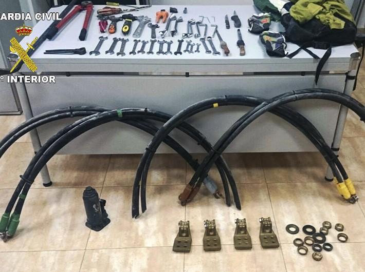 Tras hacer un reconocimiento de la zona, se localizó en las inmediaciones numerosas herramientas, entre ellas un gato hidráulico, una pata de cabra y un cortador de cableado.