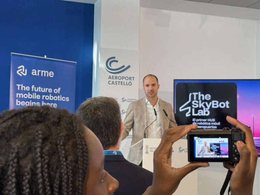 Esta mañana, se ha presentado el proyecto ‘The SkyBot Lab’ en el Aeropuerto de Castellón. Han participado: el director general de Aerocas, Justo Vellón; el presidente de ARME, Javier Miguélez; y el director general de Aviación de la empresa Aertec Solutions, Carlos Berenguer. Además, el acto ha incluido una demostración de robots programados para su utilización en aeropuertos.