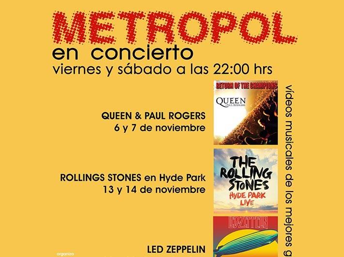 El 6 y 7 de noviembre se proyectará el concierto de Queen y Paul Rogers, el 13 y 14 The Rolling Stones en Hyde Park, el 20 y 21 Led Zeppelin y el 27 y 28 ACDC en el estadio de River Plate de Buenos Aires.