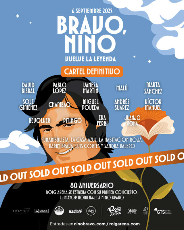 Las entradas para ‘Bravo, Nino’, el concierto en homenaje a Nino Bravo que acogerá el 6 de septiembre el Roig Arena -futuro recinto multiusos de Valencia impulsado por Juan Roig-, se han agotado un mes y medio antes del evento. Tras venderse el 80% de su aforo previsto el primer día, se tuvieron que habilitar posteriormente nuevas entradas en sectores adicionales.