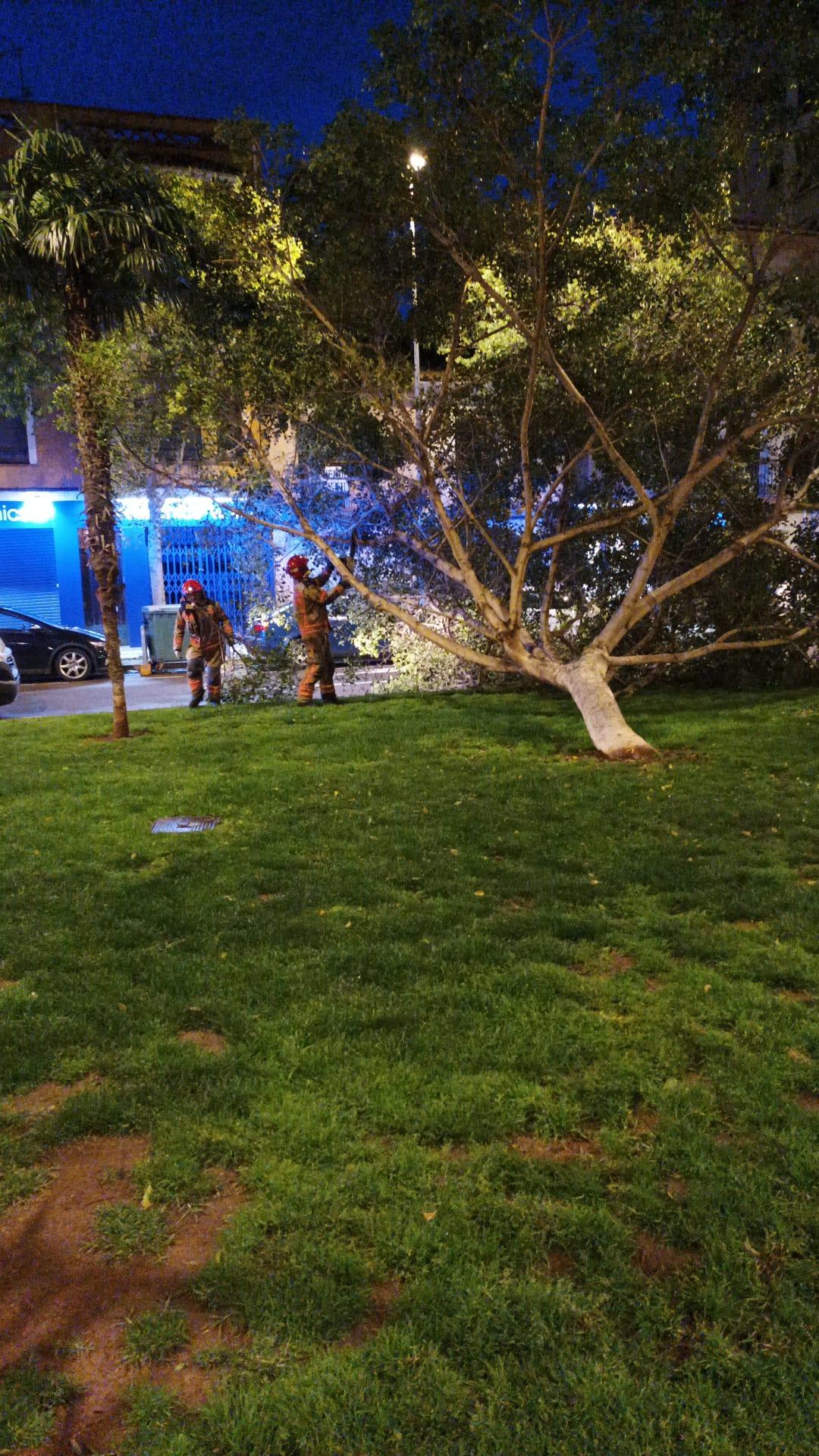 En la capital de la Plana, las fuertes ráfagas de viento después de la lluvia arrancaban y tumbaban uno de los árboles situados en la plaza de Sant Roc, en pleno centro de la ciudad. Hasta el lugar se trasladaban los Bomberos y la Policía local para poder cortar las ramas e impedir que se pudieran producir daños.