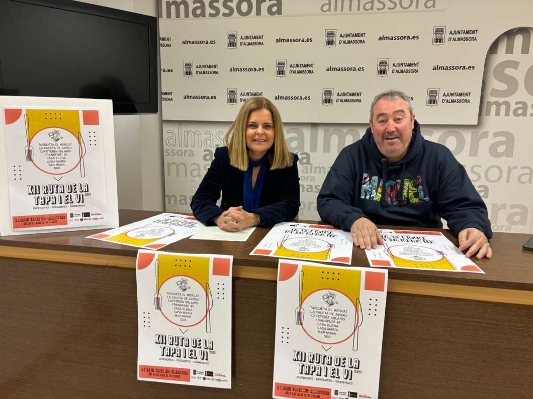 L'Ajuntament d'Almassora ha presentat la XII Ruta de la Tapa, que arrancarà dijous que ve Sant, 28 de març, i s'allargarà durant tres caps de setmana fins al 14 d'abril. La regidora de Comerç, Silvana Rovira, ha sigut l'encarregada de presentar esta nova edició en la qual participen huit bars i restaurants de la localitat, al costat de Félix Tejeda, de diví.