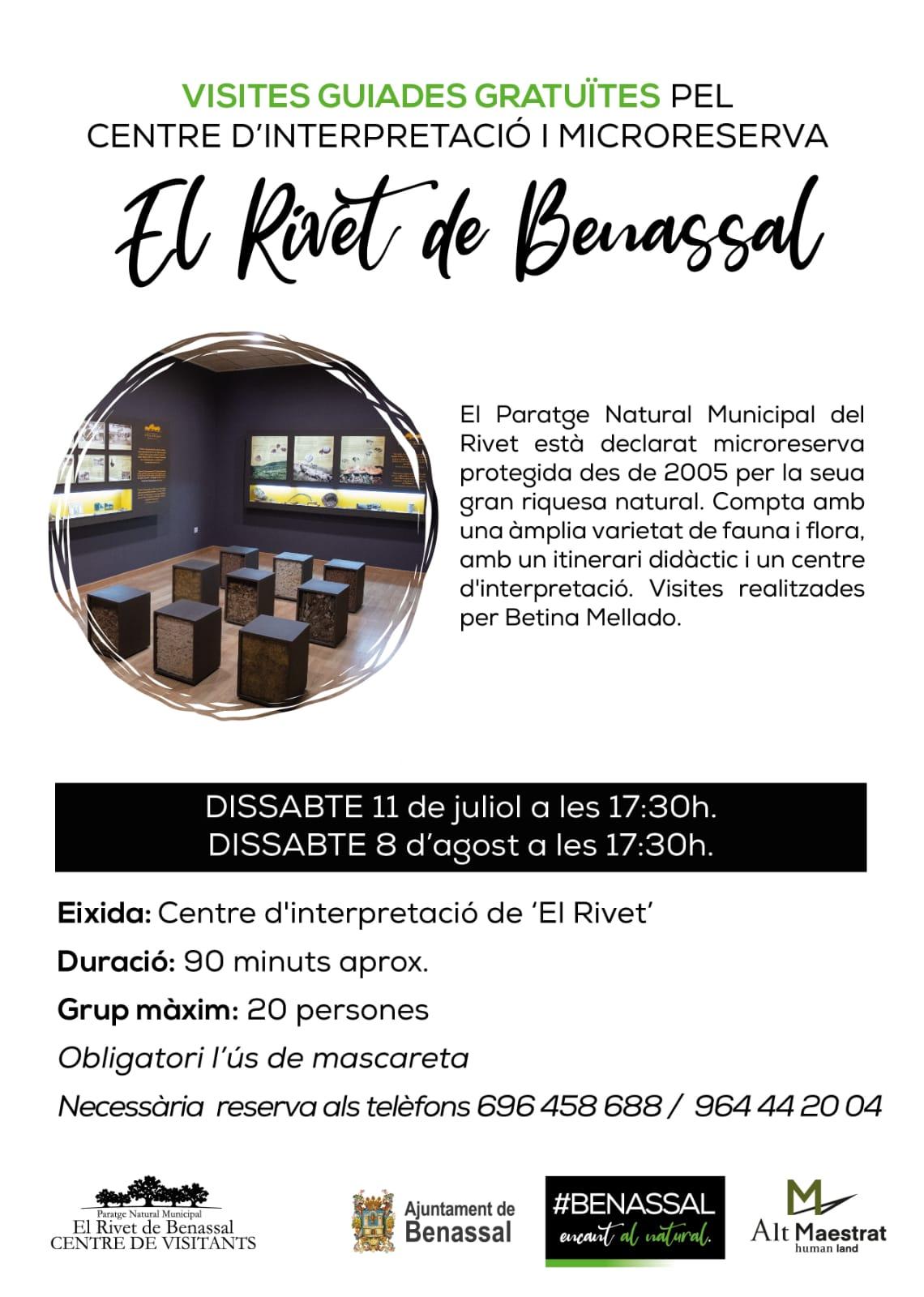 També es podrà gaudir del paratge natural municipal del Rivet gràcies a visites guiades gratuïtes. Els dissabtes 11 de juliol i 8 d'agost a partir de les 17.30 Betina Mellado donarà a conéixer la riquesa de fauna i flora d'aquesta microreserva, el seu itinerari didàctic i els detalls del seu Centre d'interpretació. Per a participar en aquesta activitat, d'uns 90 minuts de durada, serà necessària reserva prèvia (696 458 688 / 964 44 20 04) i portar mascareta.