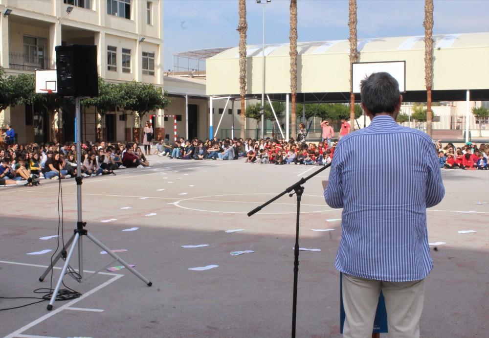 Sota el lema 'La Eduación, camino hacia la paz, ¡Deja tu huella!' tot l'alumnat del centre s'ha reunit en el pati del col·legi per a participar en l'acte final