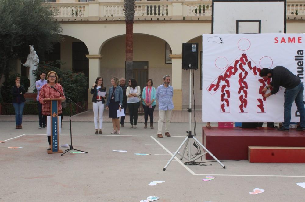L'alcaldessa de Borriana, Maria Josep Safont ha volgut estar present avui en l'acte especial que tancava en les mateixes instal·lacions del Col·legi Salesià la Setmana d'Acció Mundial per l'Educació que des de fa anys porten endavant amb la participació de tots i totes les alumnes dels diferents cicles i cursos que s'imparteixen en la institució.