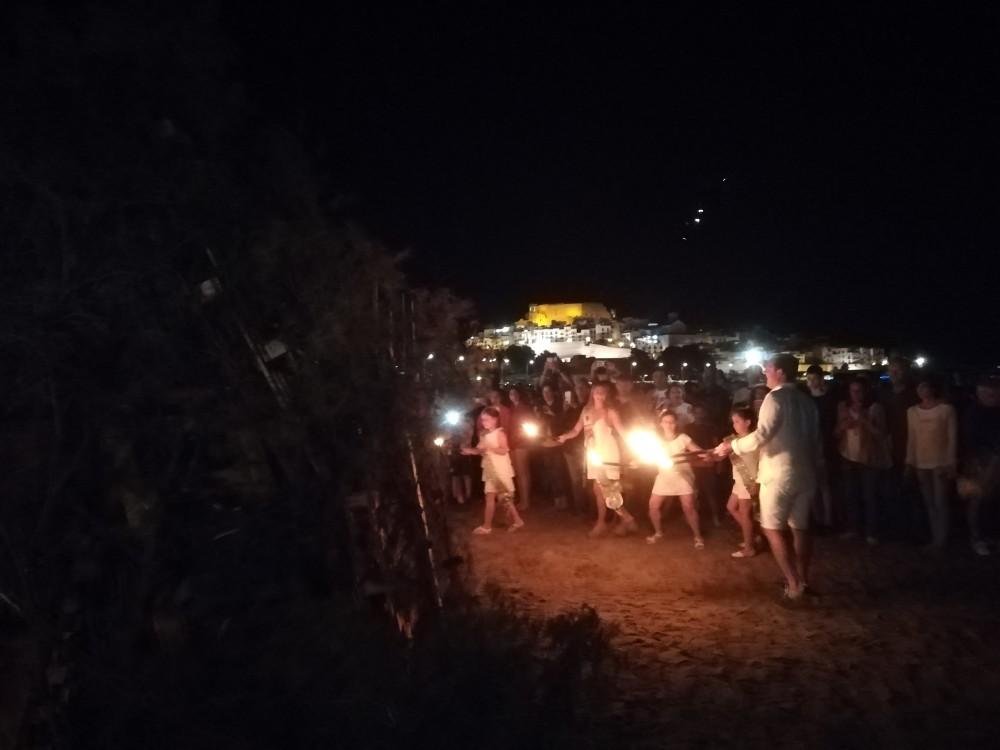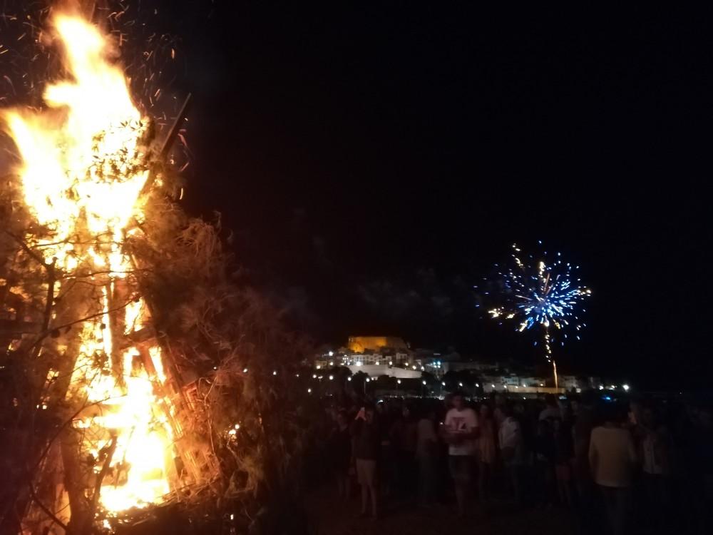 A medianoche, la Reina y Damas de las Fiestas 2018 procedieron a encender el fuego en la misma playa, acompañadas por el alcalde, Andrés Martínez, y el concejal de fiestas, Ramón Simó. El broche final llegó con el castillo de fuegos artificiales en la playa.