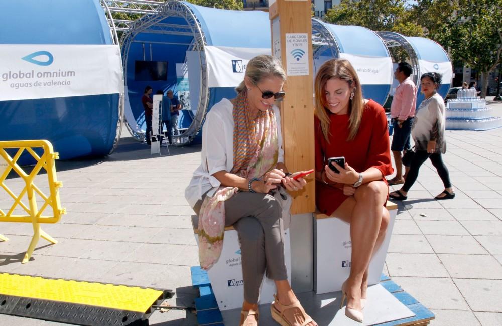 Acompañada por el consejero delegado de Global Omnium, Dionisio García Comín, y la presidenta de la Fundación Oceanogràfic, Celia Calabuig, la primera teniente de alcalde de València, Sandra Gómez, ha visitado esta mañana la exposición “Valencia, capital tecnológica del agua. Desde los orígenes de las fuentes a los contadores inteligentes”, que el grupo ha dispuesto en la feria de BonicaFest, instalada en la plaza del Ayuntamiento.
