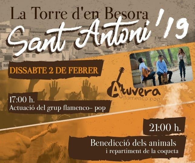 La Comisión de Fiestas de La Torre d'En Besora lo tiene todo preparado para celebrar Sant Antoni el 1 de febrero. La programación en la localidad de l'Alt Maestrat se iniciará con la actuación del grupo Rumba 13 a partir de las 17.30h.