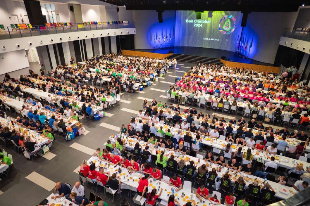 El Palau de la Festa de Castellón ha reunido a más de 1.000 personas en un multitudinario ‘sopar de pa i porta’ organizado por la Junta de Fiestas y la Gestora de Gaiatas con motivo a las celebraciones en honor a Sant Cristòfol, uno de los patrones de la ciudad.