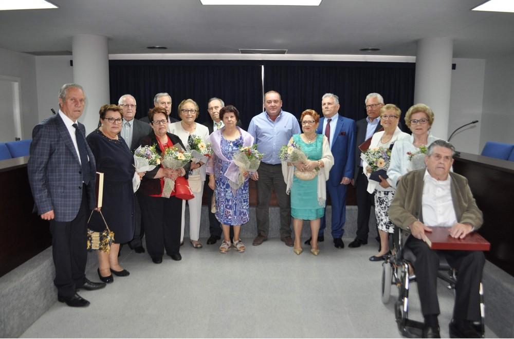 Las parejas que se casaron en 1969 recibieron una placa conmemorativa de manos del alcalde de la localidad, Vicente Pallarés