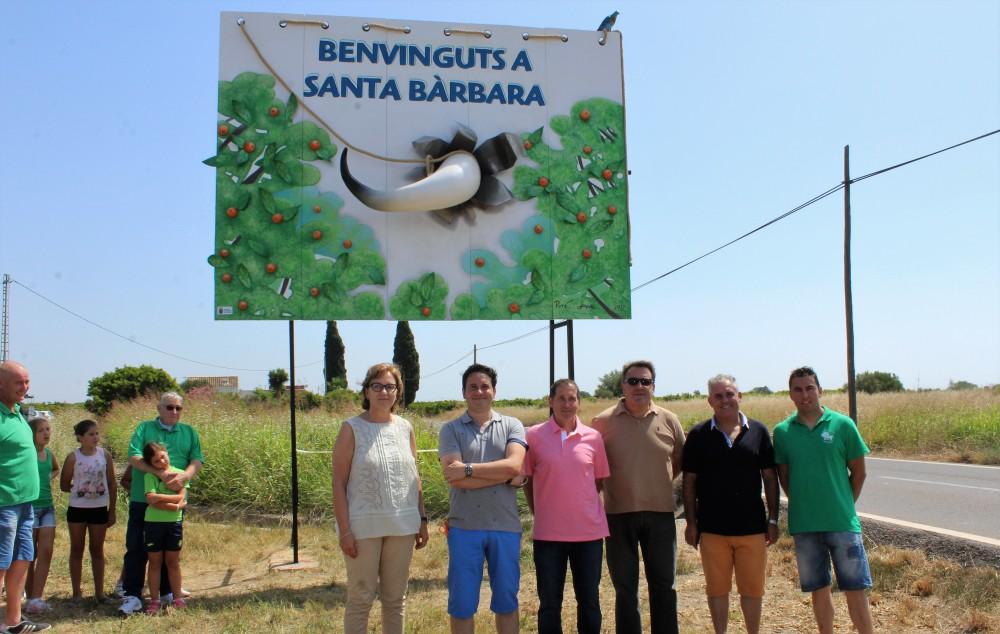 Al seu costat, el regidor Vicent Aparisi parlava sobre “aquesta gran novetat en forma de cartell anunciador que visitants i habitants s'estan endinsant a Santa Bàrbara, la qual cosa és un reflex de les tradicions i les peculiaritats d'aquesta zona, amb els tarongers, la banya i, fins i tot, els coloms que l'artista Juan Poré ha inclòs en aquesta intervenció artística”.