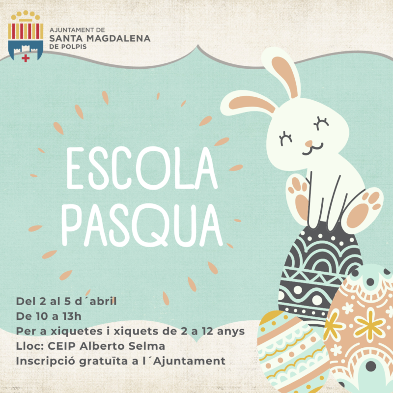 La concejalía de Educación del Ayuntamiento de Santa Magdalena vuelve a poner en marcha, una nueva edición de la Escuela de Pascua, que se desarrollará entre el 2 y el 5 de abril, en horario de 10:00 a 13:00h.