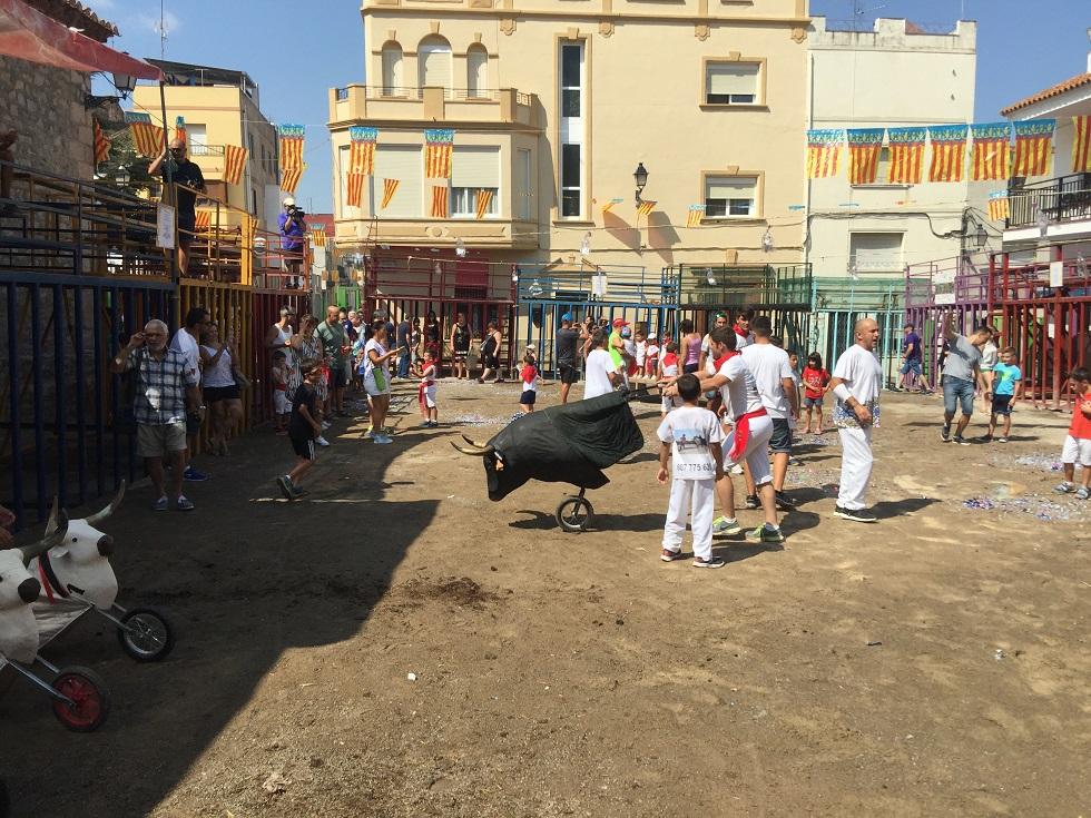 Ells també van embolar el divendres, a la nit, un bou i avui dissabte han fet una tradicional entrada de bous a l'estil Sant Fermí. Vestits de roig i blanc han gaudit corrent davant de les vaquetes infantils i han gaudit simulant als més majors. D'altra banda, en la plaça de l'església, veïns i visitants han pogut gaudir d'una exhibició de vehicles antics, a càrrec del Motor Club Clàssic Vinaròs.