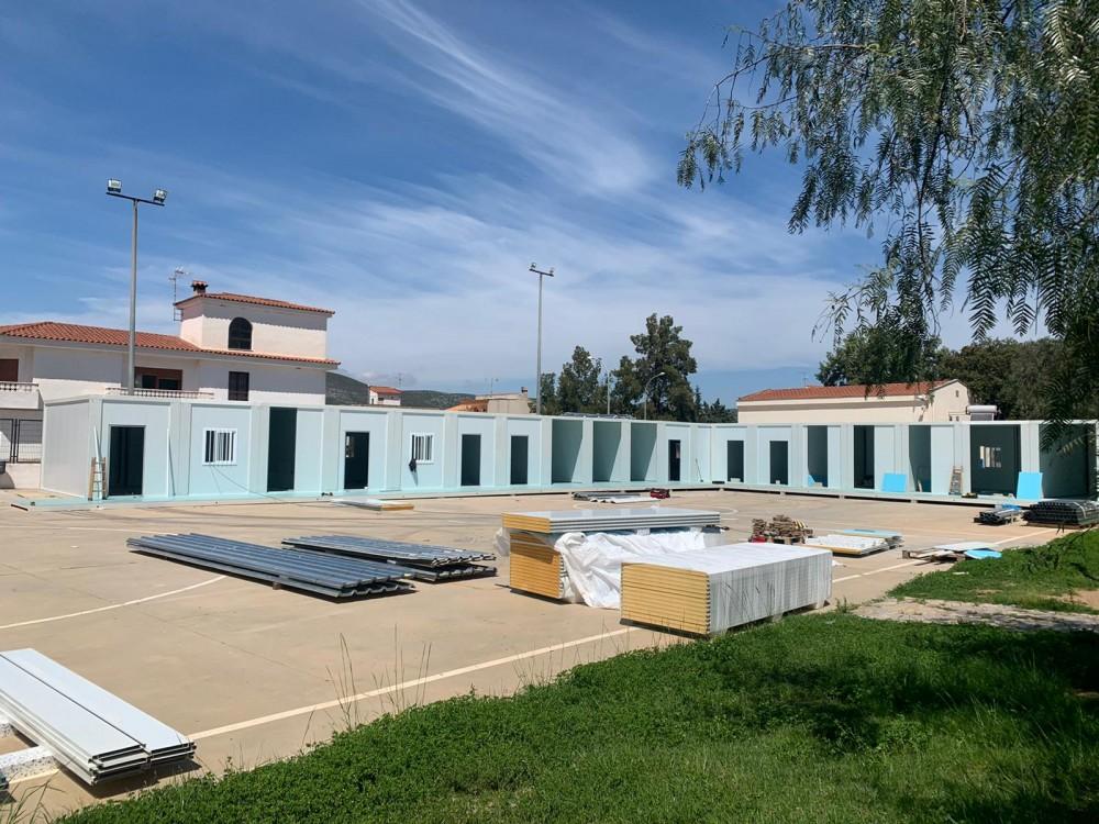 Aquest aulari provisional s'està construint en la pista poliesportiva del pavelló municipal
