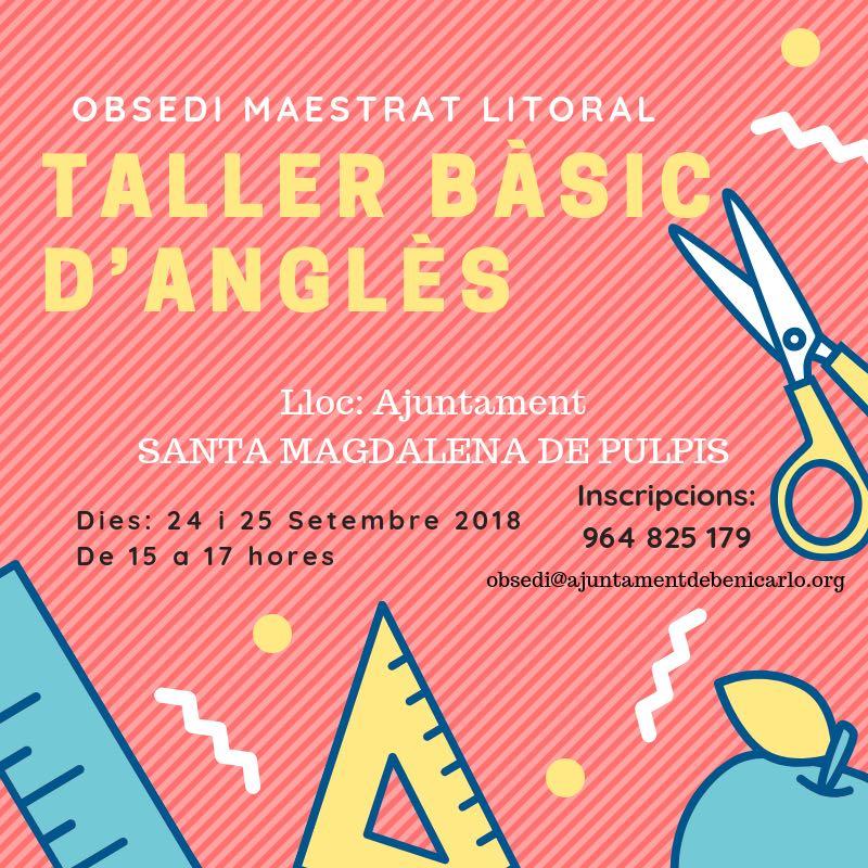 Obsedi Maestrat Litoral segueix amb els seus cursos de formació i de nou organitza un taller a Santa Magdalena. En aquesta ocasió es tracta d'un curs intensiu d'anglès bàsic, completament gratuït i amb una durada de 4 hores, repartides durant els dies 24 i 25 de setembre. Concretament, les classes s'impartiran de 15 a 17 hores, en el saló de plens de l'Ajuntament de la localitat, per part de personal especialitzat.