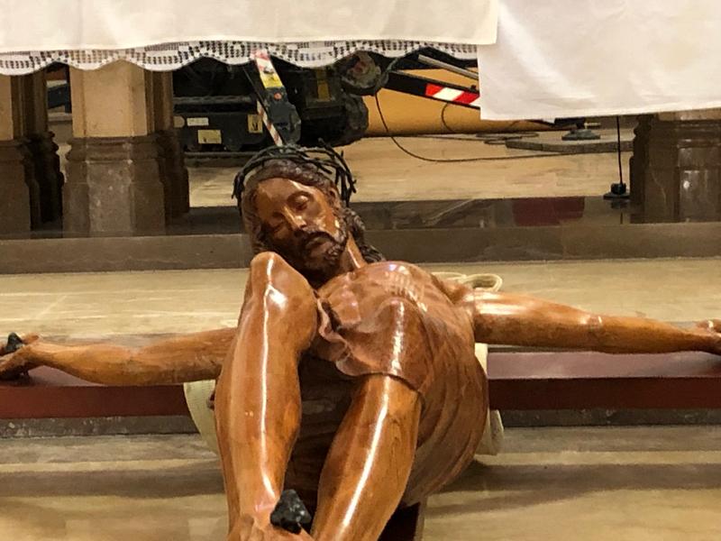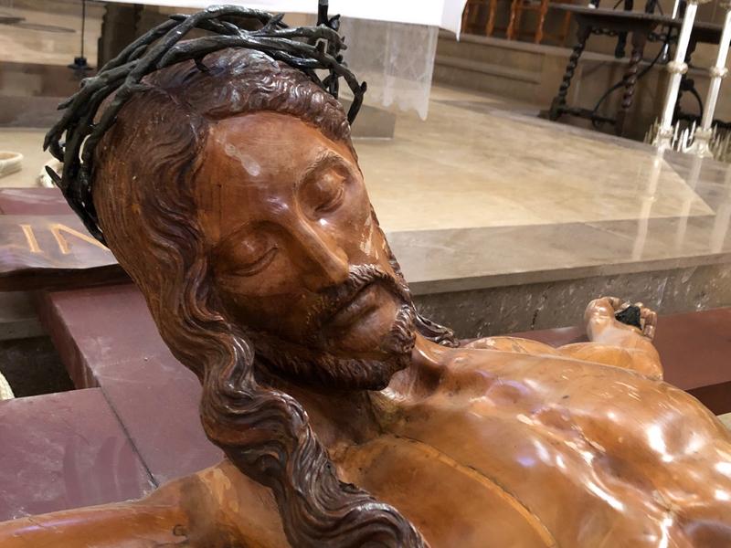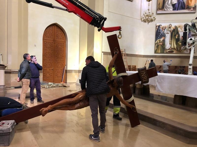 Por otra parte, el Cristo de Santa María ha sido trasladado al lateral izquierdo, donde ha sido instalado sobre un monolito de dos toneladas.