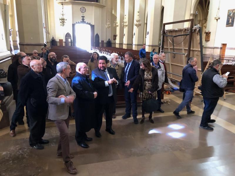 La Diputación de Castellón refuerza su compromiso con la puesta en valor del patrimonio sacro de la provincia con la culminación del conjunto pictórico de Vicente Traver Calzada en el Altar Mayor de la Concatedral de Santa María de Castellón. El presidente de la Diputación, Javier Moliner, ha comprobado los complejos trabajos de instalación de los dos lienzos del artista que completan este imponente conjunto artístico del templo. Y es que la institución provincial lleva colaborando desde 2014 en todas las fases de la realización de este gran conjunto artístico que conforman el retablo de tan preciado lugar.