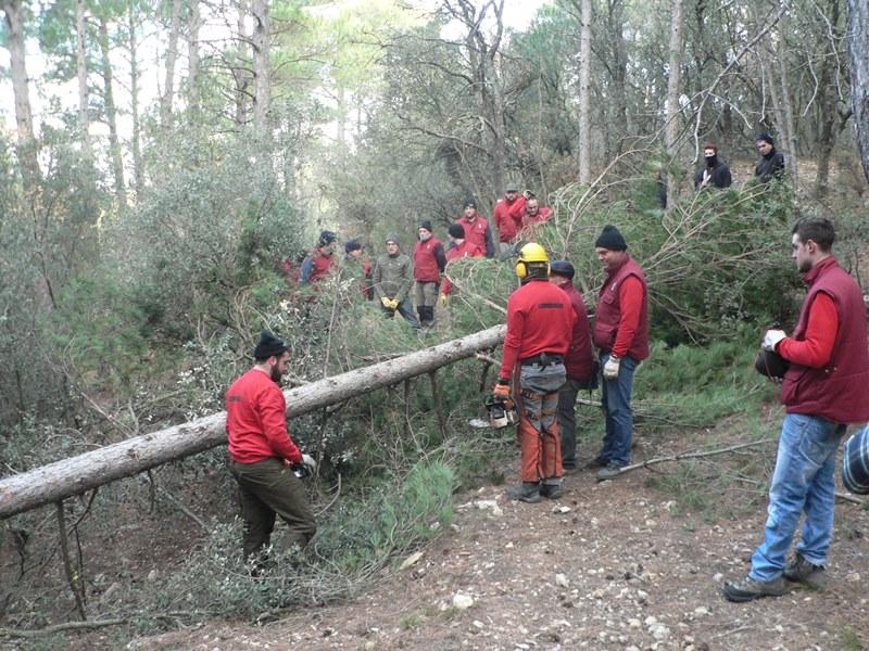 Los miembros de la Cofradía de la Santantonà de Forcall han iniciado los preparativos de la fiesta. La primera de las actividades ha consistido en salir al bosque para talar el mayo y las costillas que servirán para conformar la estructura de la monumental barraca que se levantará con motivo de la fiesta.
