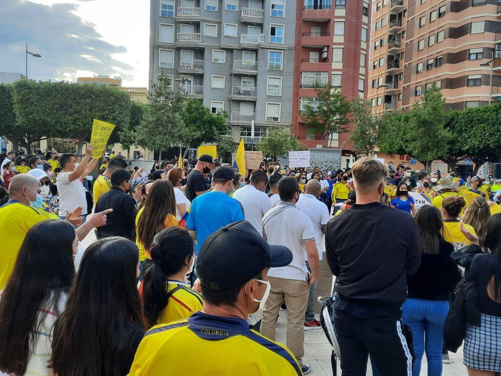 En torno a doscientas personas se han manifestado esta tarde en la plaza Botánico Calduch de Castellón, para reclamar seguridad y libertad en Colombia. La gran mayoría son colombianos que residen y trabajan en la provincia, pero que no pierden su añoranza por la tierra que les vio nacer.